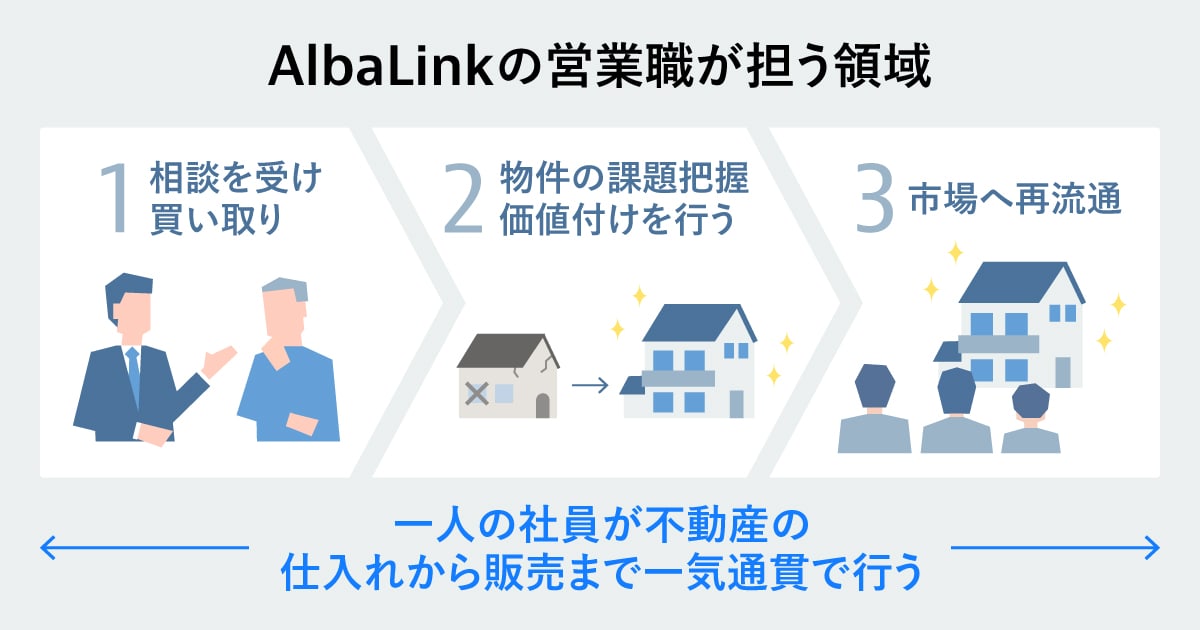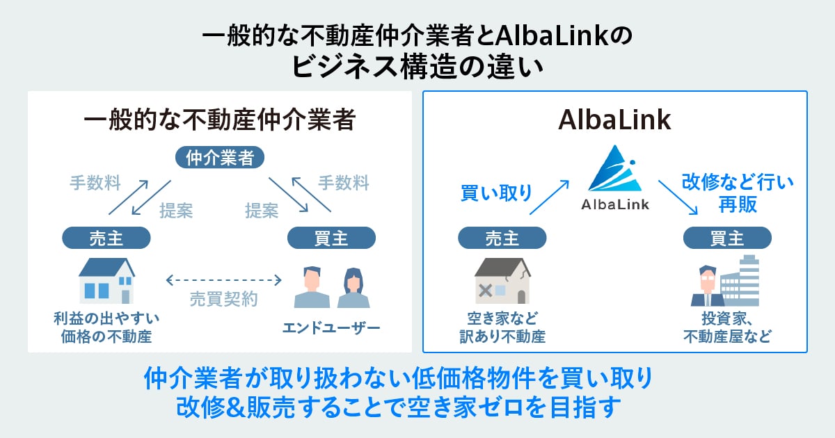 河田:前提として「空き家をゼロにする」をミッションに掲げるAlbaLinkは一人の社員が不動産の仕入れから販売まで一気通貫で行うスタイルが特徴的です。