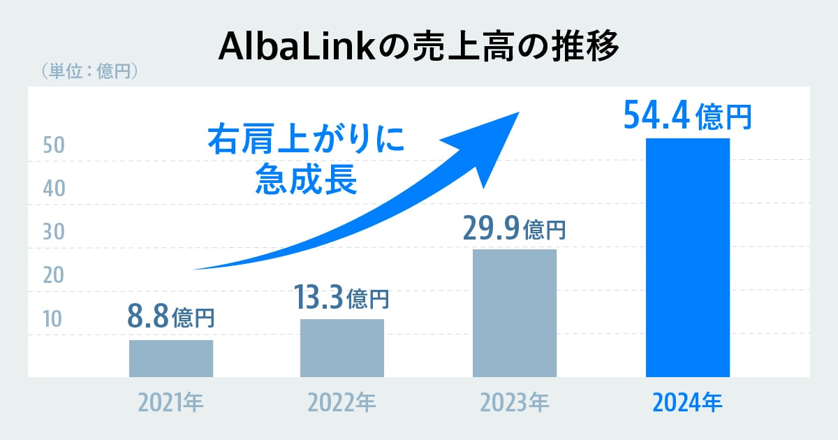 河田:会社の成長スピードが速く、今年に入り3つの支店を開設するなど、マネージャーのポストが次々と生まれて、挑戦機会が増えることで社員の成長が加速していると思います。2021年に8.8億円だった売上高は、2023年に約3倍の29.9億円、2024年には54.4億円と右肩上がりに急成長しています。