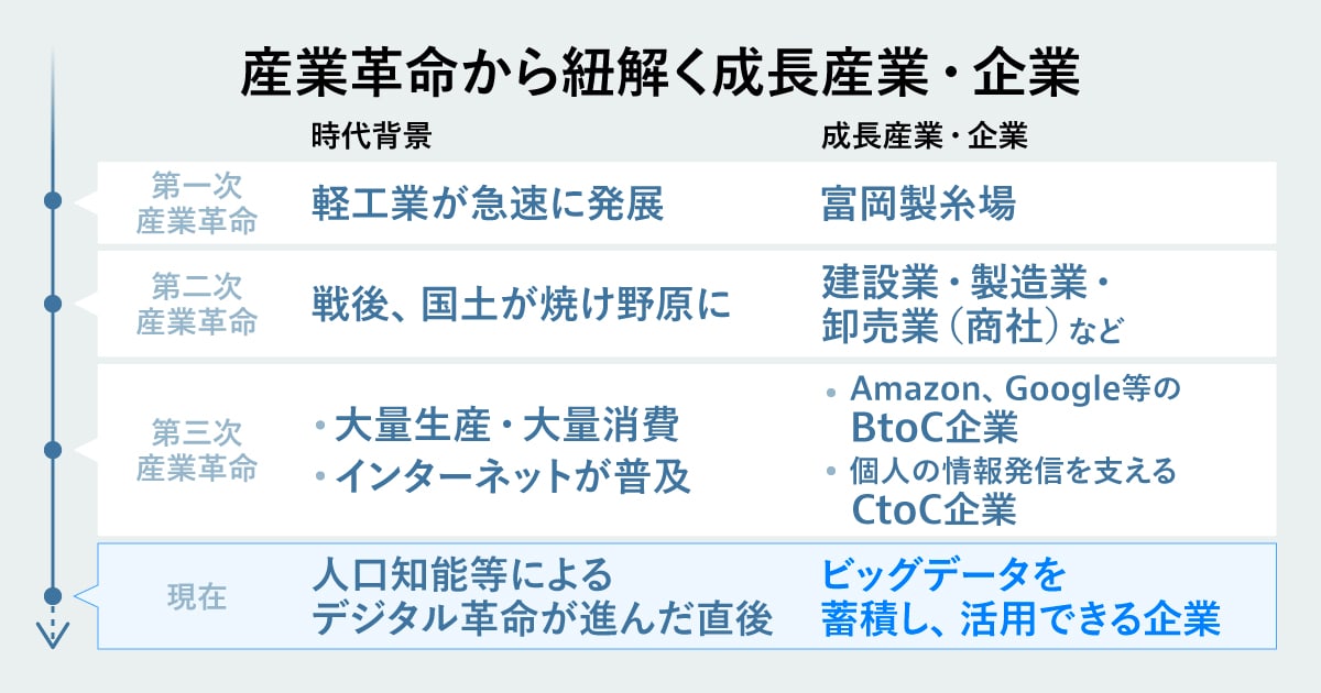 ⸺ビッグデータを扱う企業は数多く存在します。その中で第四次産業革命の波に乗るような企業を見分けるポイントがあれば教えてください。