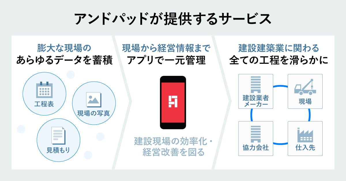 私がCFOを務めるアンドパッドもまた、建設建築業界のデータを日本で最も蓄積し、データプラットフォーマーとして現在、業界変革に挑んでいる企業です。