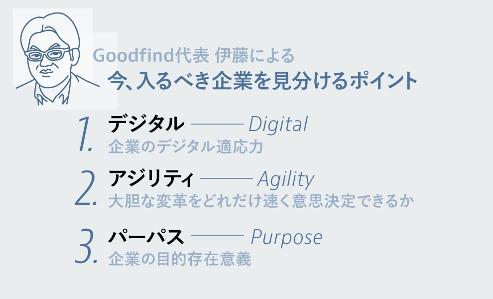 ──伊藤さんより、今入るべき企業を見分ける3つのポイントを、ズバリ教えてください。