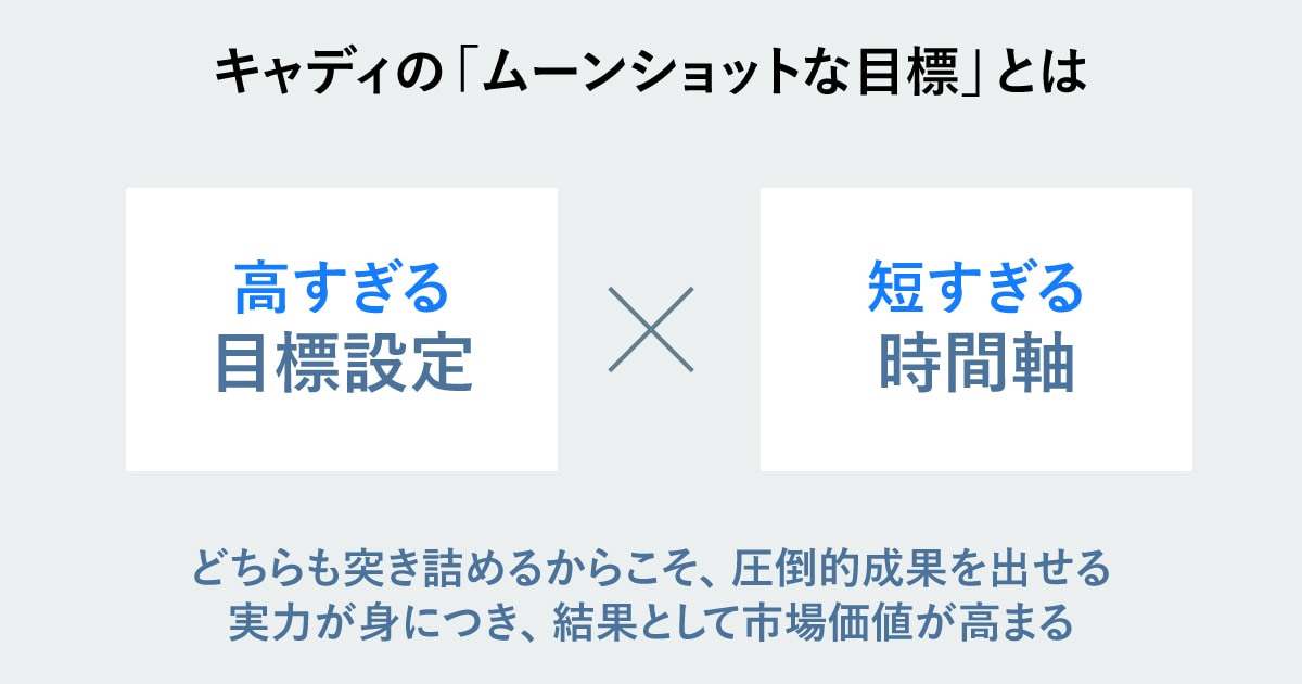 キャディではこれが日常茶飯事ですが、重要なのは、はなから「無理だ」と諦めるのではなく、あらゆる手を打って突破口を探ることです。一般的に、高い目標を掲げると「時間をかければ達成できる」と考えがちですが、キャディでは徹底して「短期間での達成」を目指します。そのため、目標達成の難度が圧倒的に高くなる。