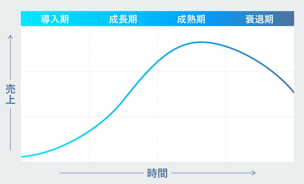 PLCとは製品が市場に投入されてから、成長・衰退するまでの過程を「導入期」「成長期」「成熟期」「衰退期」の4つの段階に分けて説明したモデルですが、そのサイクルが年々短くなっているのです。