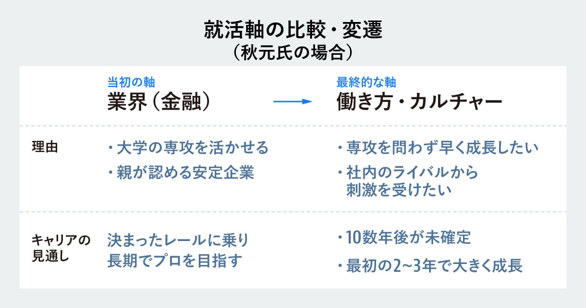 南: 秋元さんの就活軸は、最初から「働き方とカルチャー」だったのでしょうか。