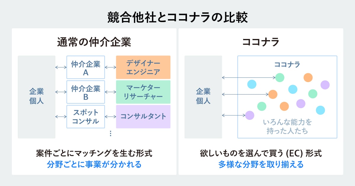 今までは、企業という形を取ることで成果が最大化されるという雇用の仕組みになっていましたが、ココナラのような人材の流通インフラが整えば、今まで以上に人材とプロジェクトのマッチングを最適化し、高品質のアウトプットを出しやすくなります。