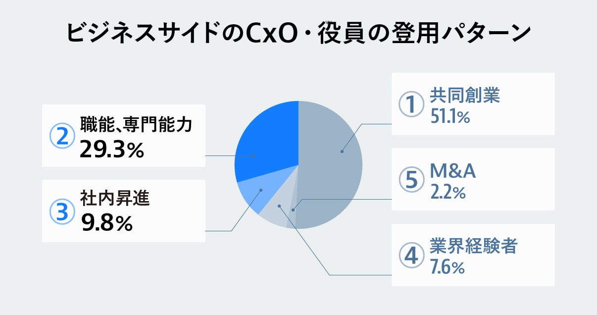 さらに、そこからビジネスサイドのCxO・役員の登用パターンに絞ってみると下記のとおりになる。