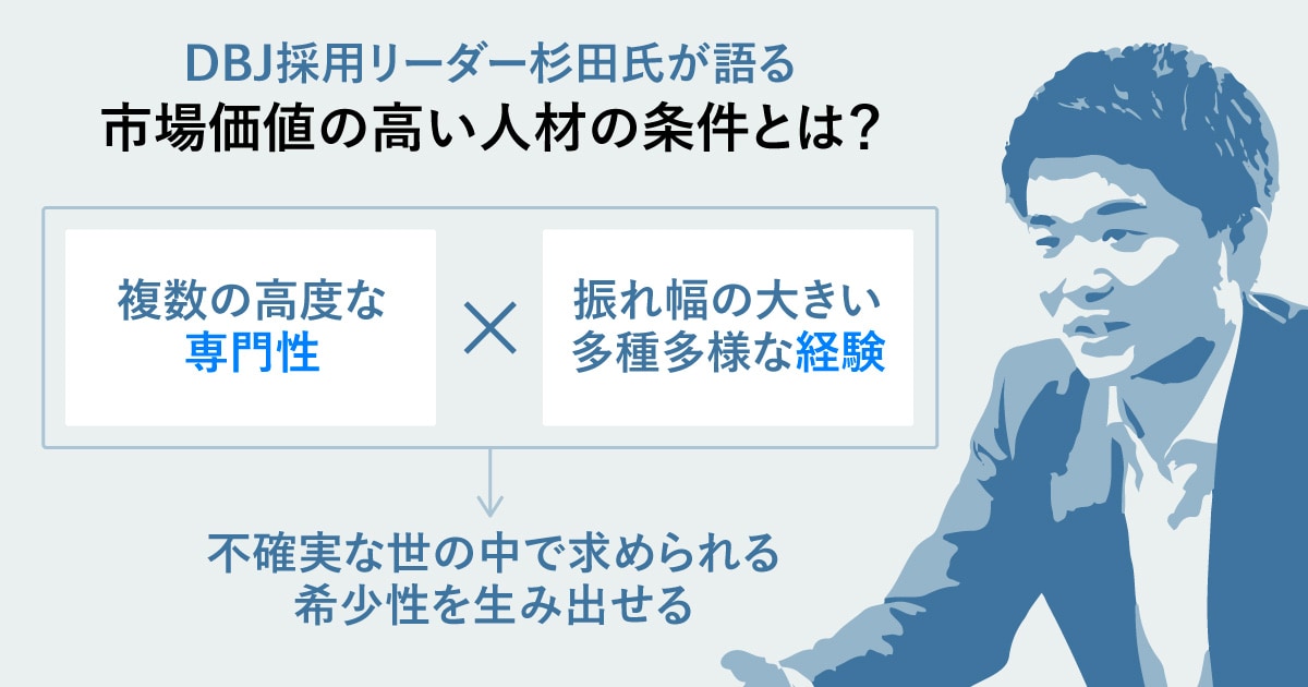 杉田:「複数の高度な専門性」と「振れ幅の大きい多種多様な経験」の掛け合わせこそが、不確実で変化の激しい世の中で求められる希少性を生み出せる、市場価値の高い人材の必要条件だといえるでしょう。