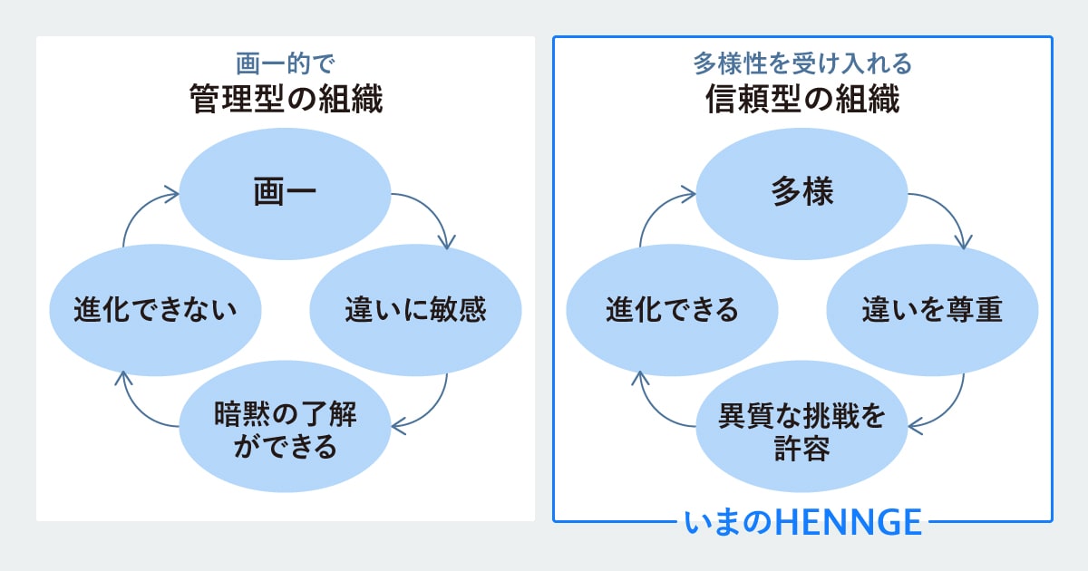 一般的には、組織が拡大すると効率化や統制が重要視され、組織運営にも合理性が求められていきます。HENNGEも組織が拡大し、「合理的な組織運営」に対するニーズが自然に高まっていく中で、短期的には非合理的でも本質的に大切な「あり方」を今後どう維持していくのかは重要なテーマです。