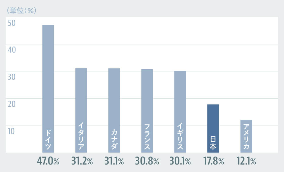 日本は確かに製造業が強く、自動車や電気製品など海外でも人気のあるブランドがたくさん存在しています。しかしかつての高度経済成長期はともかく、現在は簡単なもの、例えば100均で売っているような製品や衣類などはほぼアジアから輸入しているのです。事実として、日本のGDPにしめる輸出の割合は先進国の中で比べても低いことは明らかです。