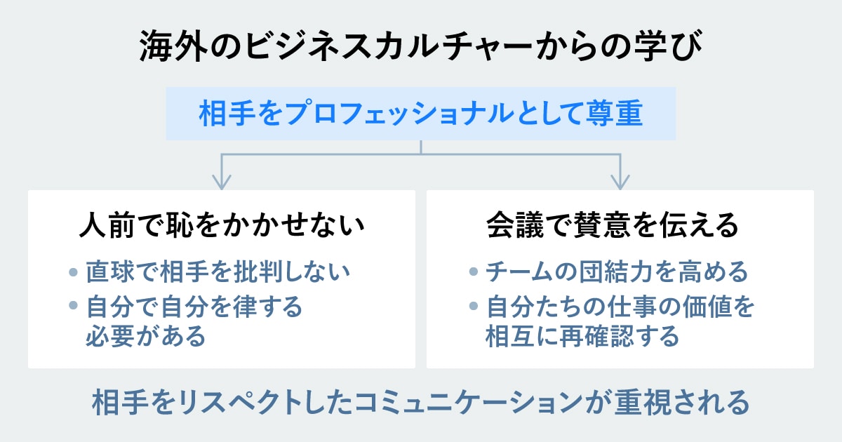 ⸺海外と日本ではビジネスカルチャーに異なる点があるとわかりました。しかし日本で働く上では関係ないことではと思ってしまいます。
