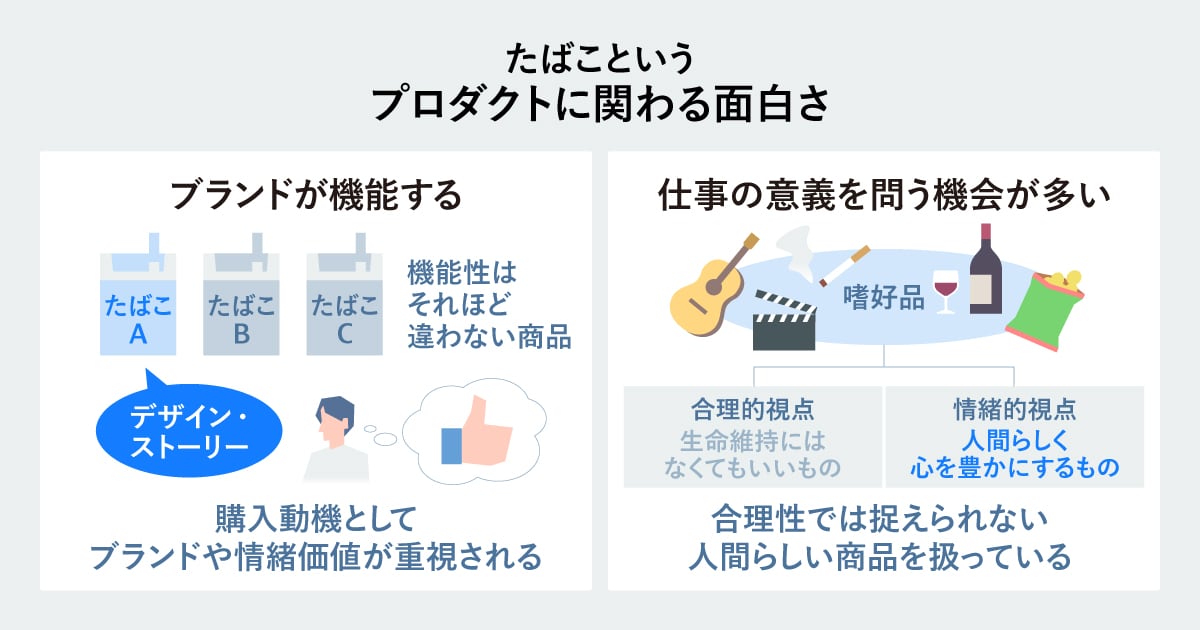 ⸺市場規模が大きく特殊な産業とのことですが、たばこというプロダクトに関わる面白さは何だと考えますか?