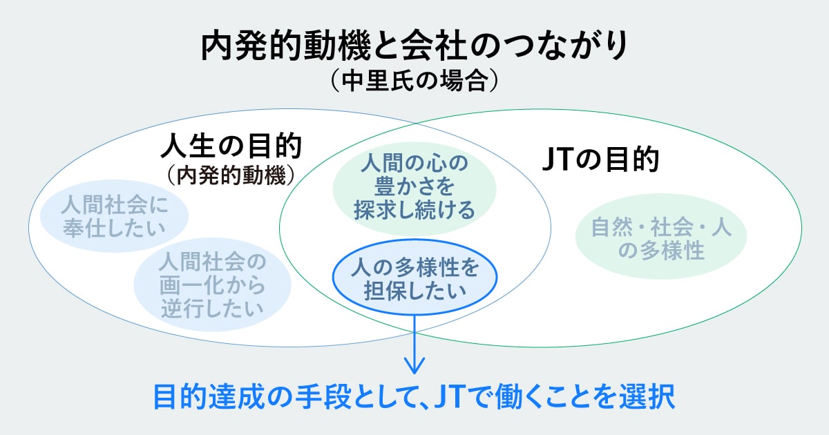 中里:私は自分の内発的動機と、会社の目的とのつながりに重きを置きました。