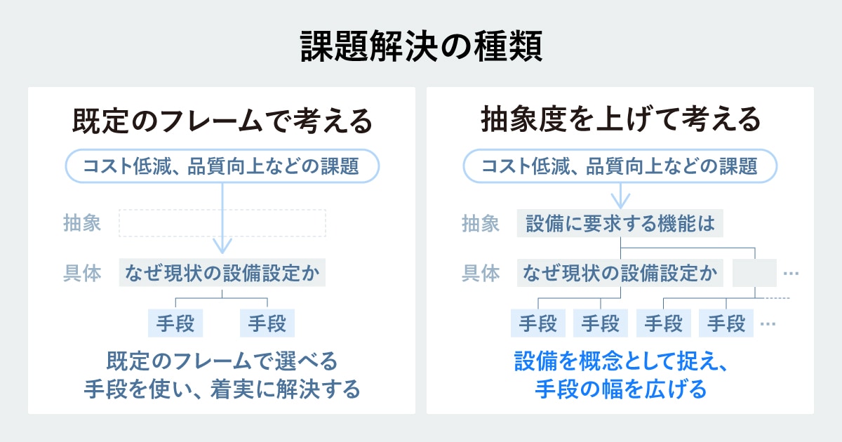 中里:そうなんです。もちろん既定のフレームに則って、求められる機能を満足させることも大切です。一方で、既定のフレームの中で課題解決をするだけではなく、一段、二段と、抽象度を上げ、前提を捉えなおすことも非常に重要となってきます。