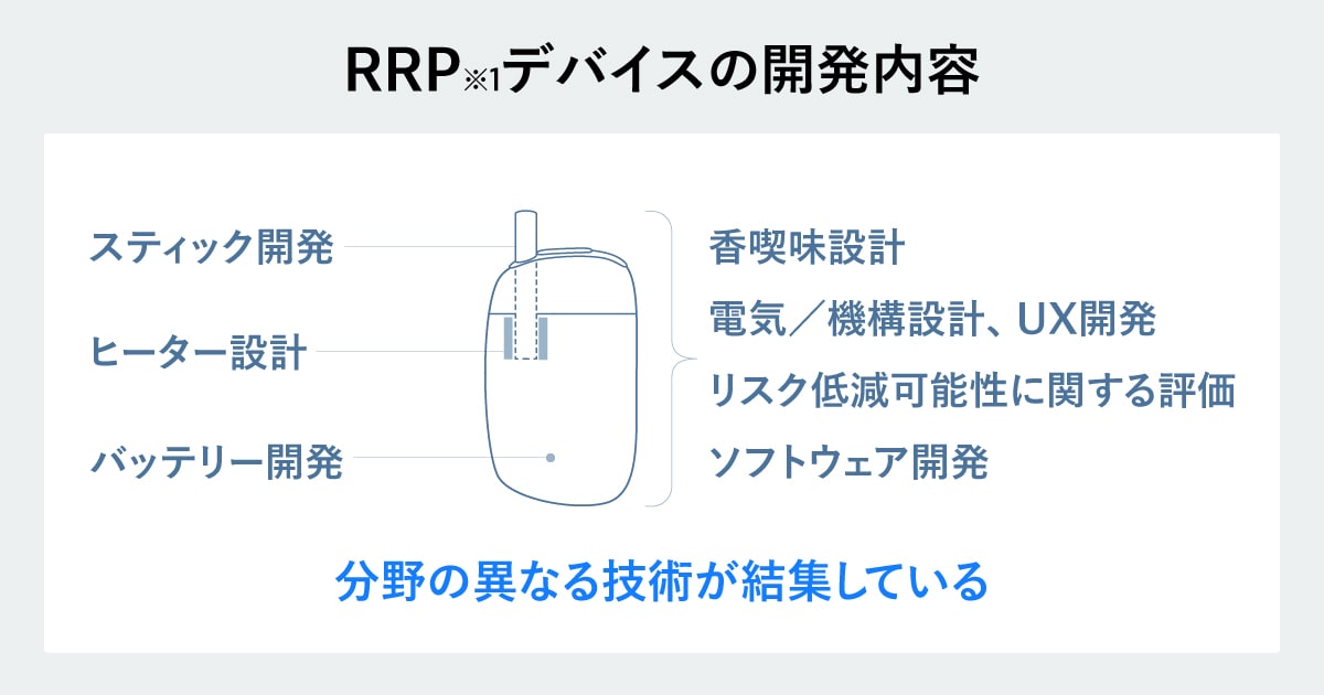 RRP※3の開発技術や、その土台となる電子工学の習得はJTにとって新たな挑戦です。もちろん杉田さんのいる日本のチームとも緊密に協力していますし、世界中の外部のエンジニアリング会社とも連携しながら、常に新しい知見を得ています。