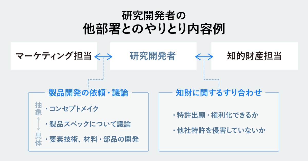 例えば何か新しい開発を始めるときは、ユーザーの嗜好やインサイトを分析しているマーケティンググループと連携します。「このような技術や製品を開発してほしい」と依頼が来ることもありますし、「ユーザーは何を求めていて、何を開発すべきなのか?」「仕様はどうあるべきか?」といったコンセプト部分から議論することもあります。