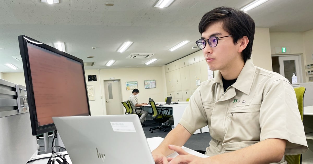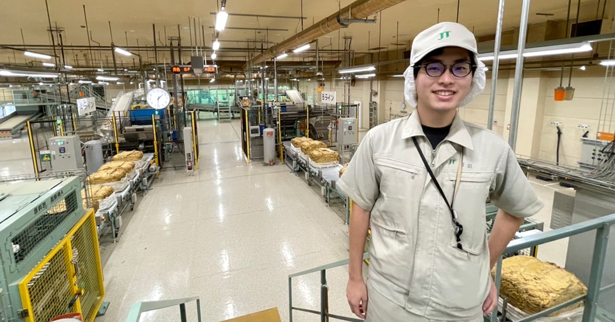 JTのカテゴリー採用が始まった2020年に新卒で入社。初期配属先としてスタッフ業務を選び、熊本県の原料製造工場にて西日本エリアの経理を担当。実績/投資管理や決算に携わり、設備投資や原料購入を合わせると年間100億円を超えるコスト管理を拠点にて行う。より良い原料製造工場の実現に向けて、様々な課題の解決にコスト面から他の部署と協力して取り組んでいる。