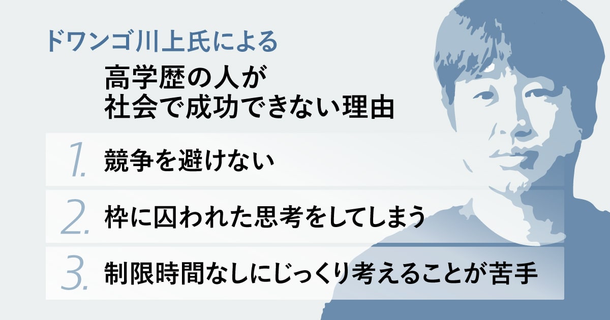 ──川上さんは、「自分を優秀だと思っている高学歴の学生ほど、実社会では成功できない」とお話されていると聞きます。それはなぜでしょうか?