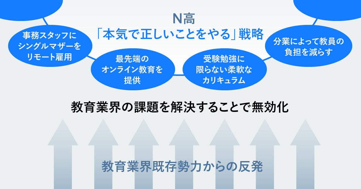 川上:仰るとおり既得権益からの反発は最大の障壁となりやすいです。N高では「本気で正しいことをやる」という戦略を取ることで、それを無効化することを試みています。