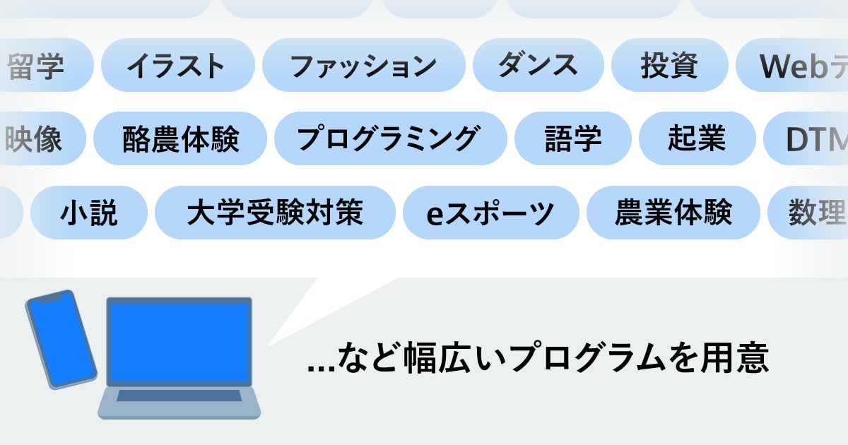 私たちは、高校が生徒に提供すべきなのは、気休めでも励ましでもなく、もっと実際に役に立つ、世の中で戦える武器だと考えているんです。そのためN高では課外授業として、プログラミングやデザインの専門コースなどの授業プログラムや、地方自治体と連携した職場体験、民間企業とのプロジェクト学習の機会を用意しています。