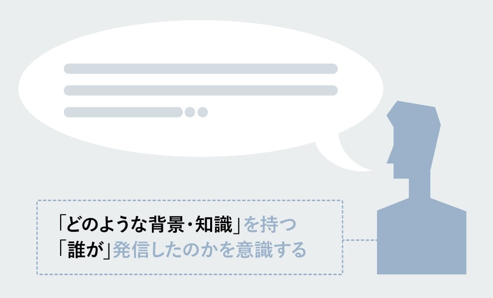 物事を考えるために欠かせないのは、情報リテラシーです。普遍的なスキルではありますが、ほぼすべての人は自分に都合の良いポジショントークをするので、情報を正しく理解するためには、どのような背景や知識を持つ誰が、何を根拠に発信したのかを考えることが非常に重要です。