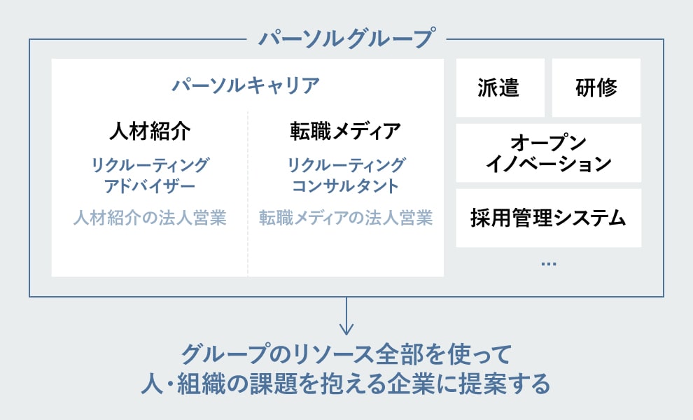 そこで人材紹介事業部の営業が求人広告の提案もすることができるよう、それぞれの事業が連携できる仕組みを作ることにしました。こうして、お客さまに「パーソルキャリアが持つサービスを総合的に提案する」という当社事業の強みが生まれました。