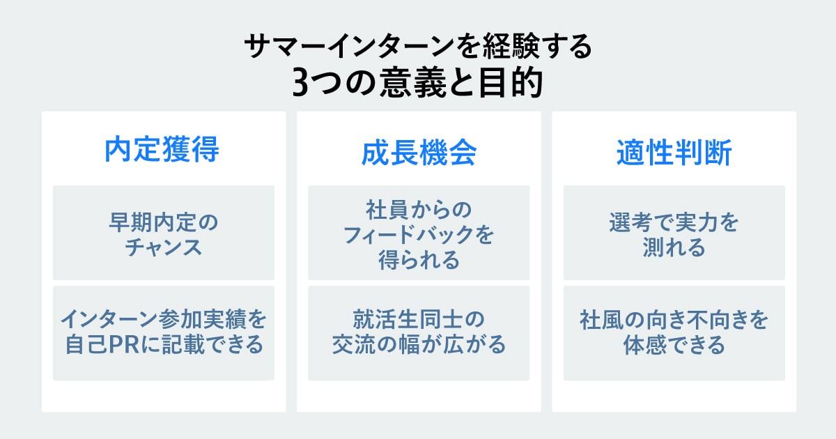 みなさんは、サマーインターンに参加する目的を定義できていますか? インターン前には選考対策に注力しがちですが、機会を最大限に活かすためには、まずインターンに参加する目的・意義を整理することが大切です。