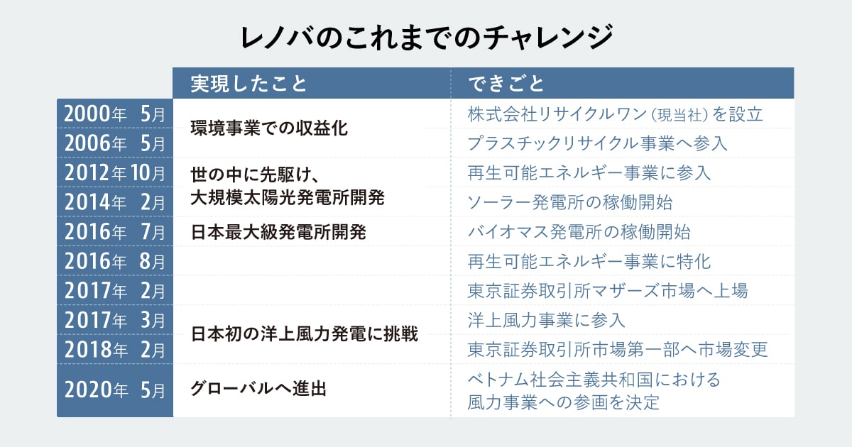 ──環境問題にコミットする理念は創業から変わらない一方で、事業は大きく方針転換しながらも一部上場を果たされています。なぜ貴社は事業の転換を成功させることができたのでしょうか。