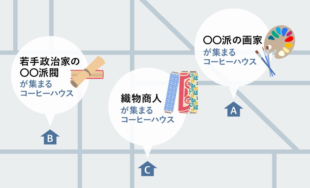 現在のカフェに近いものは1511年にエジプトで生まれ、ロンドン、パリ、そして世界へと広まりました。17世紀当時、ロンドンで大流行していたコーヒーハウス(いわゆるカフェ)は、日中、職業や嗜好ごとに人が集まる社交の場でした。ターゲットは「職業や嗜好ごとの人々」、バリューは「昼の社交の場」というわけです。ケイパビリティとしては「居心地の良い店舗」と「接客力」があればよく、コーヒーの原価の安さで収益を得るという「収益モデル」で回っていました。