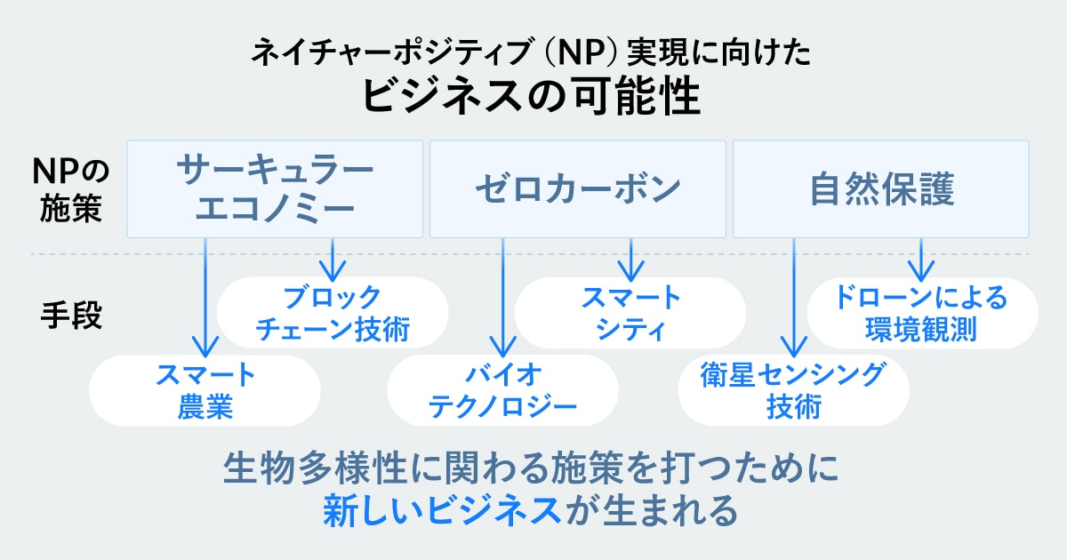 またForbes JAPANの取材によると、経団連の西澤氏は、大きな機会が生まれる分野として食料や土地・海洋利用、インフラ・建設、エネルギー・採掘の3つを挙げ、自然資本に依存度の高い分野でビジネス化に挑戦していく必要があると述べています。