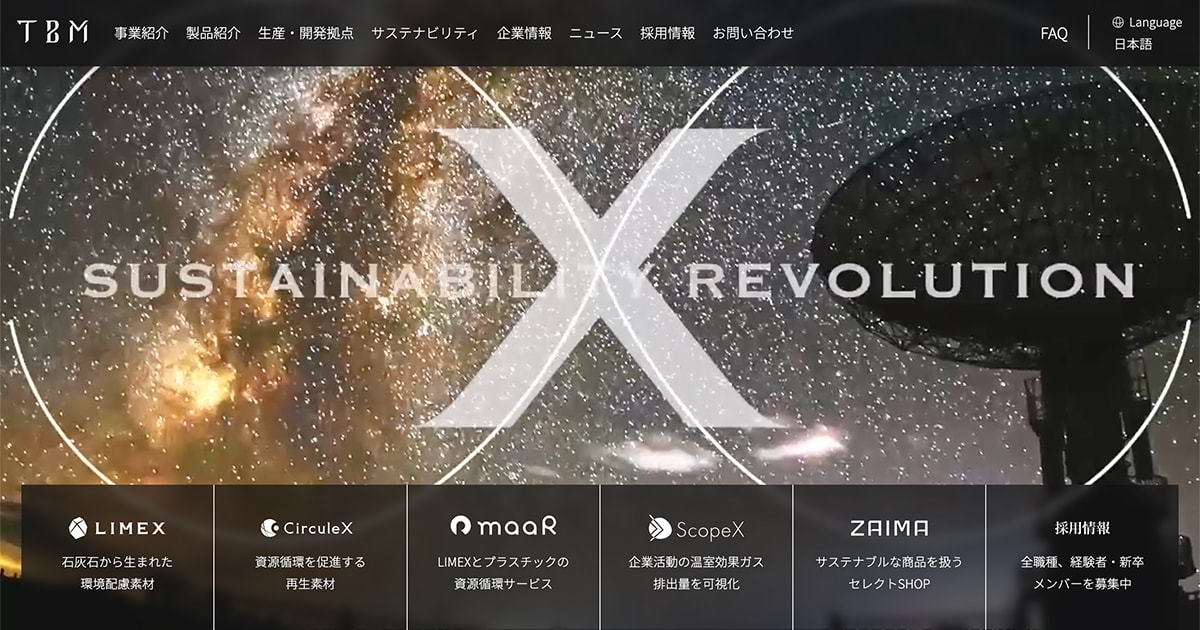 J-Startup Impact選定企業でもあるTBM社は、日本の深刻な課題である「12. つくる責任 つかう責任」を起点に、「海の豊かさを守ろう」「陸の豊かさを守ろう」など計8つの目標への貢献や取り組みを通じてSDGsにコミット。事業⾃体がSDGsに貢献できるものですが、さらに専任のサステナビリティ部⾨を設置し、新製品開発やイノベーションのヒントとしてSDGsを活⽤しています。