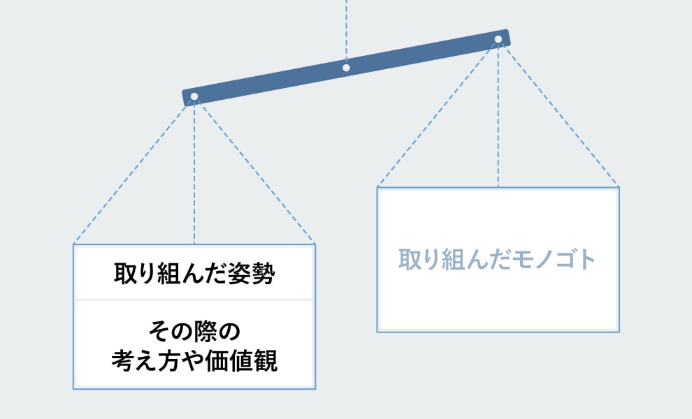 ここまで、面接官が採用したくなる自己PRのエッセンスをお伝えしてきましたが、自己PRに関して最も致命的な勘違いは「取り組んだモノゴトに優劣がある」というものです。グループ面接で「海外のNPOに参加して井戸を掘りました!」という自己PRを聞くと、「それに比べてなんて怠惰な学生生活を過ごしてきたのだろう」と気後れしてしまう人もいるかもしれません。しかし、アルバイト、留学、サークル活動、スポーツでの実績など、取り組んだモノゴト自体に優劣はありません。いかにして取り組んだか、その際の考え方や価値観が問われるのです。