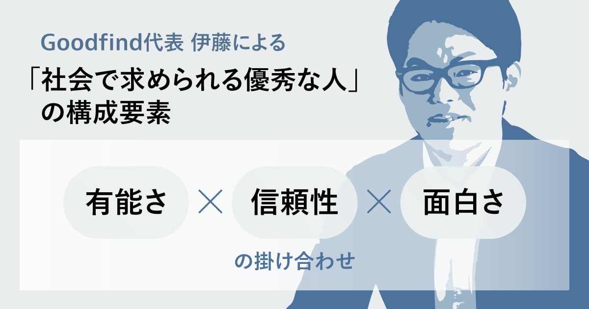 伊藤:確かに就活の時点ではその観点が重視されているように思えるかもしれないですが、そもそも社会でコラボされる優秀な人になるためのキーってそれだけじゃないですよ。私は『有能さ×信頼性×面白さ』の3つの掛け合わせだと思っています。