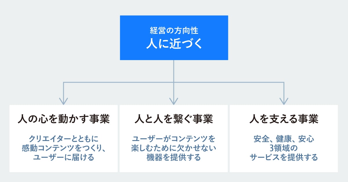 ソニーは人に近づくために、次の3つの方向性で事業を開発しています。