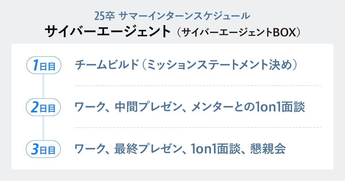 26卒向けのサマーインターンは、3日間のインターンシップ「サイバーエージェントBOX」と「経営戦略インターンシップ」を開催します。