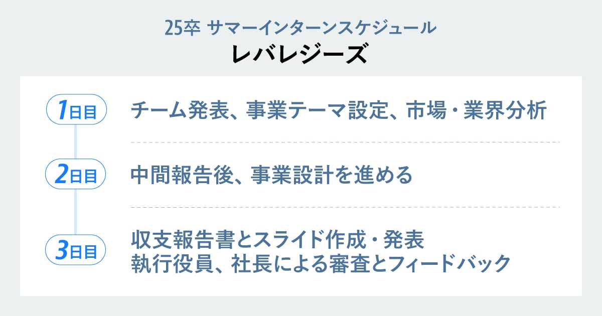 - 他のインターンはアイデアを考えるだけだったが、レバレジーズはPL作成まで行い、実際のビジネスグロースを体験できた(名古屋大院生)