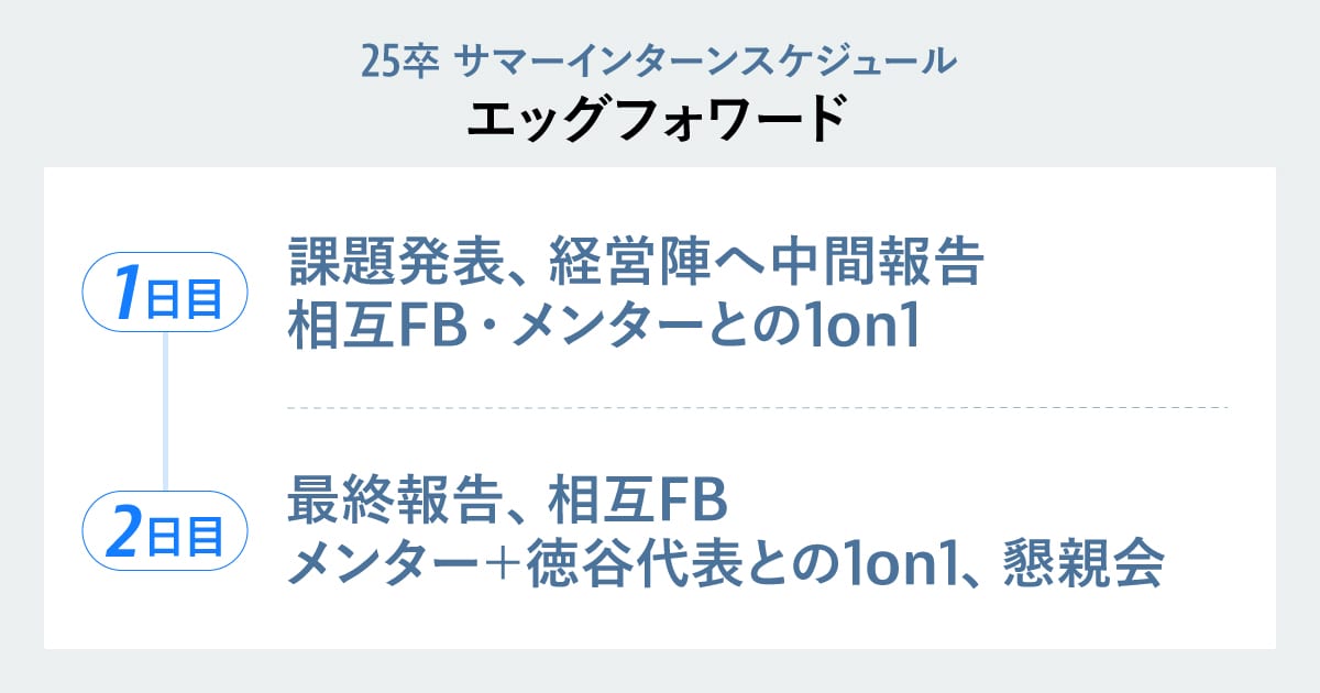 エッグフォワードのインターンシップを担当する新卒採用責任者の山田 萌木さんに、より詳しい内容をインタビューしました。
